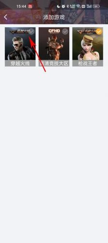4、在添加游戏的页面中,在穿越火线、高清竞技大区、枪战王者三款游戏中选择添加你需要添加的游戏角色。