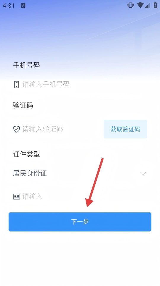 在新生入籍界面,按顺序填写【手机号码】【验证码】【证件信息】,然后点击【下一步】即可完成操作。