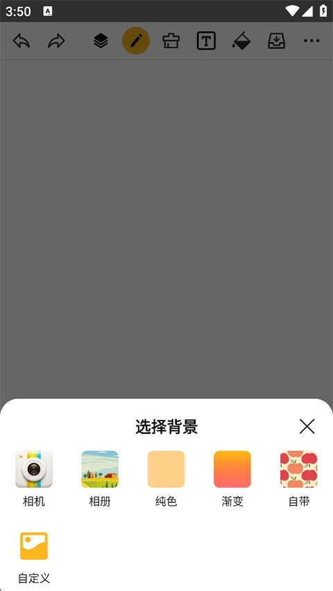 可以从相册导入背景,也可以选择纯色、渐变、系统自带或自定义背景等类型。
