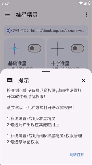 首先启动准星精灵应用,进入主界面后向下滑动页面,找到“基础准星设置”选项。