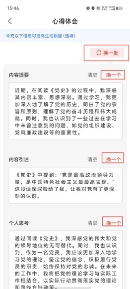 要是您对生成的内容不太满意,可以点击“换一个”来重新生成部分内容,一直到生成的内容满足您的需求为止。