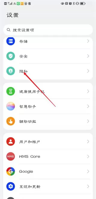 1、在手机主屏幕打开设置,向下滑,然后点击【隐私】;