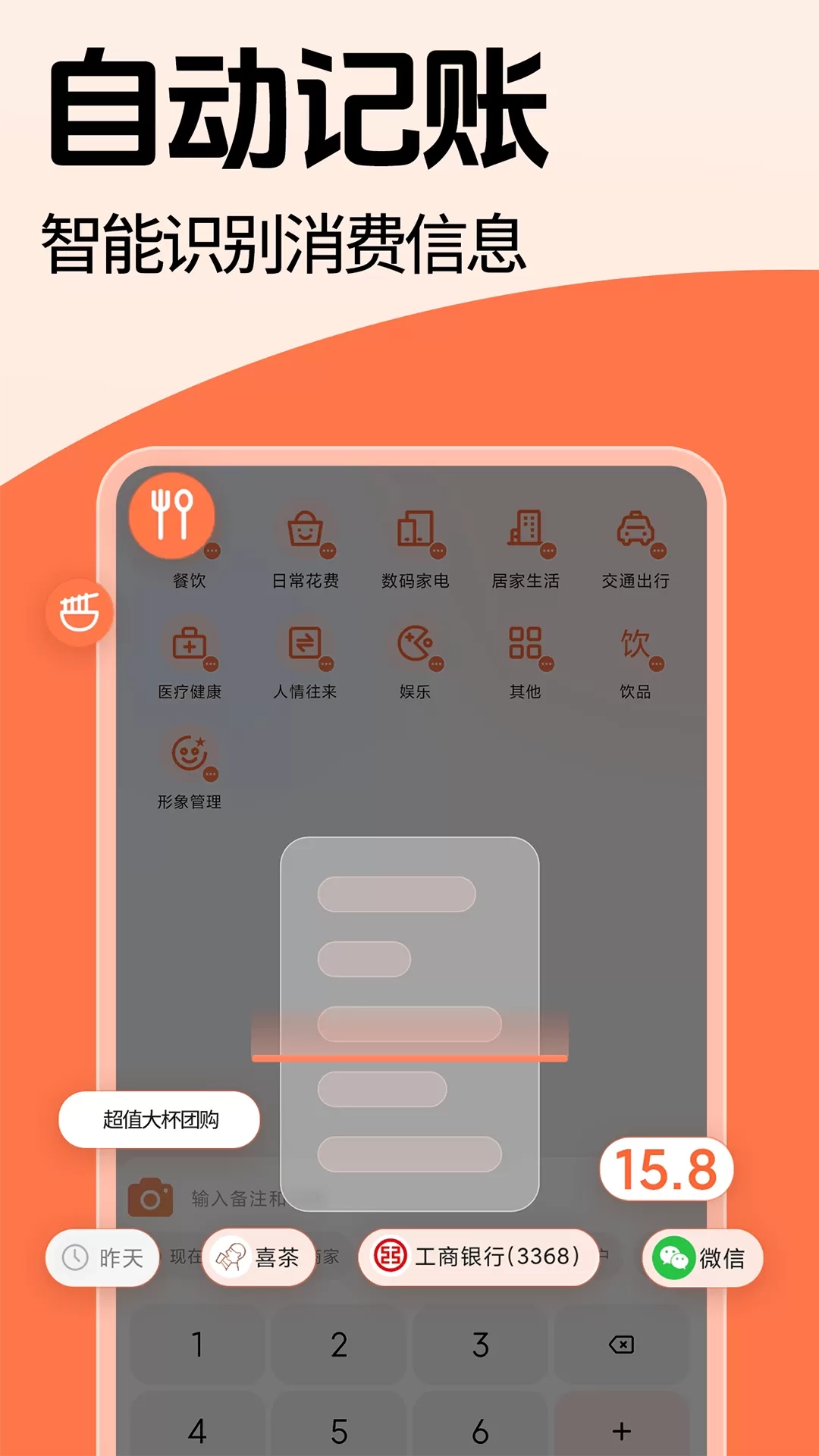 多种形式,自动识别账单信息,自动帮你记账!方便快捷!