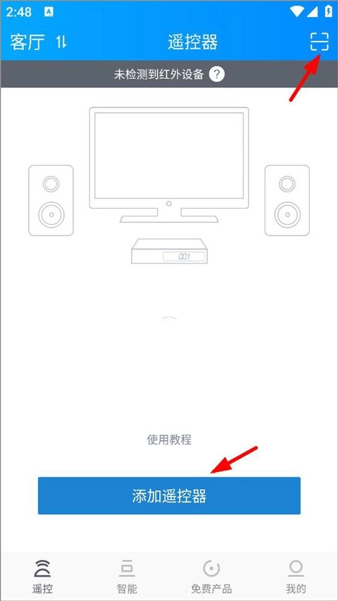 打开空调遥控器,按下红色按钮就能检测到红外设备并启动空调。