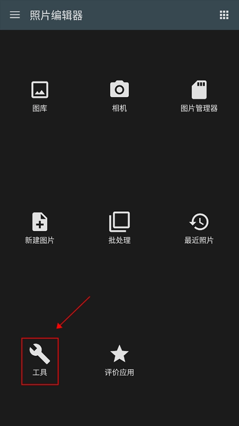 打开照片编辑器后在首页中点击图库