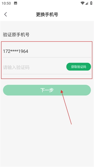 在更换手机号的页面,输入相关信息后点击“下一步”,即可完成手机号的更换流程。