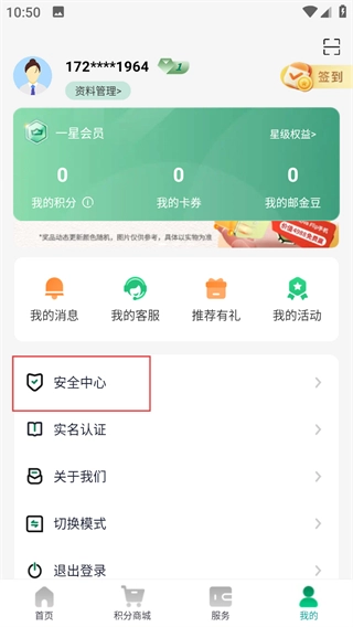 在安全中心页面,找到并点击手机号变更选项,即可进入更换手机号的操作页面。