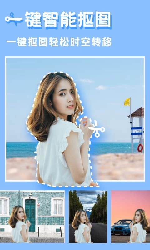 【智能抠图】一键操作即可完成抠图换背景,丰富多样的背景素材任你选择,精准的抠图效果广受好评!