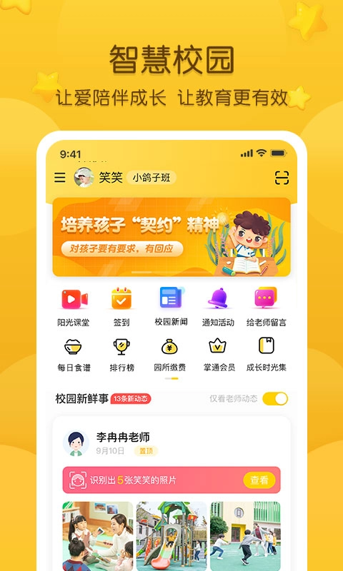 掌通家园围绕“安全、沟通、成长”这一核心,借助人脸识别签到机、智能体检机等硬件设备与软件系统的协同配合,达成校园安全的智能化管理。家长能够实时了解孩子在校动态、接收各类通知并参与互动活动;园方则可高效处理校务工作、发布相关内容以及开展数据分析。该平台适配家长、教师、园长和第三方教育机构等多角色使用,构建起闭环式的教育生态体系。