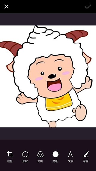 提供了裁剪、形状、滤镜、贴纸、文字等多种编辑功能;