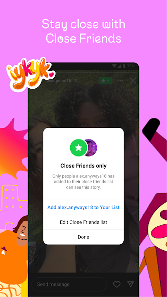 可以在24小时后自动消失的快拍里添加照片和视频,还能借助趣味的艺术创意工具让你的创意鲜活生动。