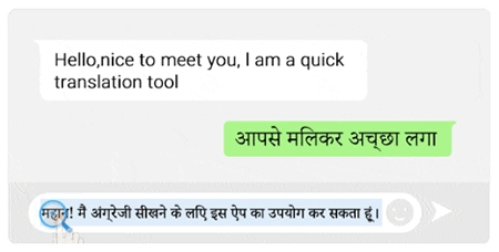 输入您的内容后,把“翻译球”拖到输入框里,接着就能用外语发送文本了。