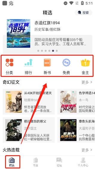 进入后点击“精选”,我们就能在这里快捷地找到推荐的优质图书。
