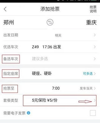 还设置了距离发车前若未成功购票便取消订单的选项,能便捷地设定何时终止抢票。
