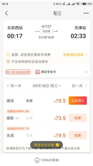 还不止这些呢,最贴心的是“上车补票”功能,它能自动帮你筛选出靠谱的出行方案。以后再也不用为了多坐几站,费劲去查路线上每个站点的余票啦。