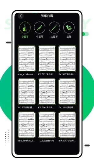 曲谱库资源丰富,包含弦乐器、管乐器、钢琴以及声乐等多种类型的乐器曲谱。