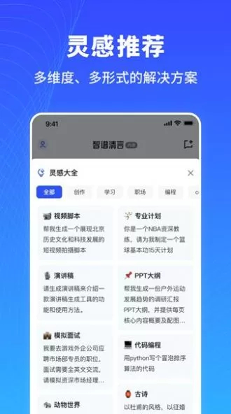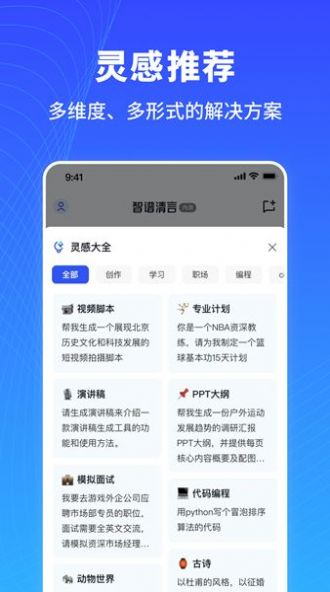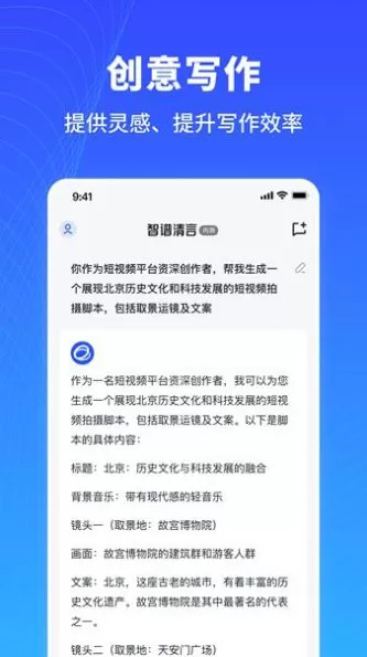 智谱清言App作为一款处于领先地位的AI写作助手软件,凭借其出色的功能性设计、极具吸引力的亮点、实用性强的特色,以及对写作问题的智能化解,备受广大用户青睐。这款创新型软件致力于为用户打造高效、智能且个性化的写作辅助服务,不管是创意写作、学术论文,还是商业文档领域,都能让用户获得更为便捷、高质量的写作体验。