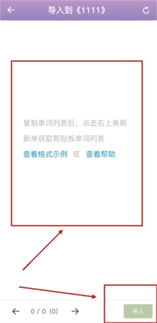 然后在导入界面,将自己复制的单词粘贴进入即可。