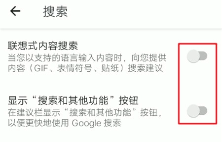 滑行输入、语音输入和搜索功能我都用不上,所以就把它们都关闭了。这里的搜索功能采用的是Google搜索,不过在国内因为某些原因没办法正常使用。