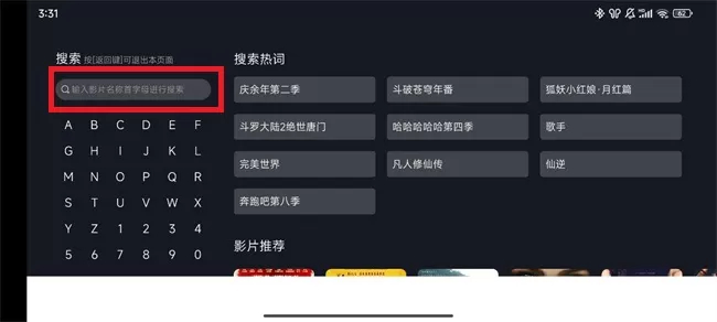 2、在首页中搜索栏输入片名,快速检索相关的影视作品