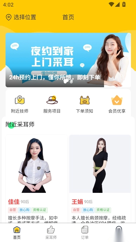 夜约到家手机版是一款专注于提供安全私密上门采耳服务的平台,便捷实用的订单管理功能,能让用户轻松查看历史订单的费用明细;用户可随时在线下单预约,畅享丰富多样的高品质项目服务。若您对这款软件感兴趣,欢迎前来本站体验!