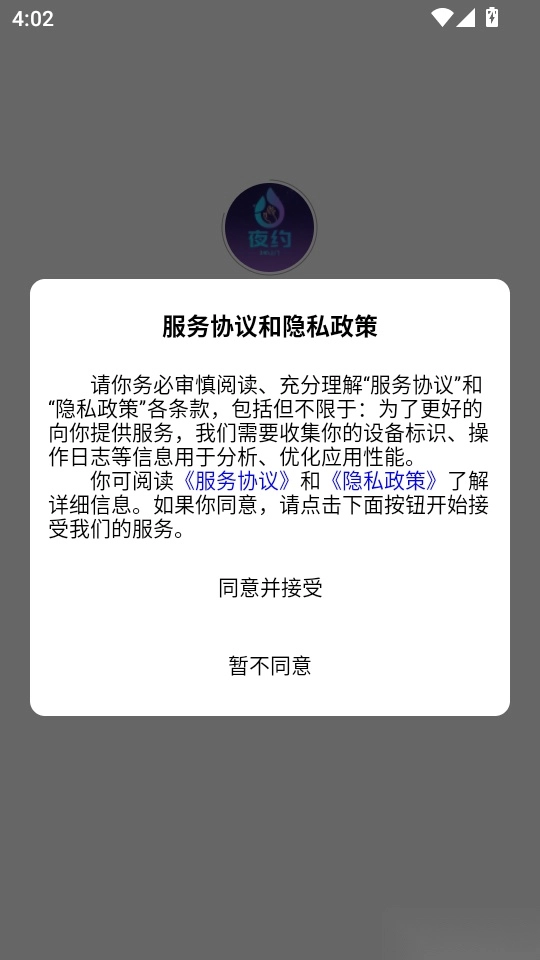 首先打开软件,阅读协议与隐私政策后,点击“同意并接受”按钮即可进入。