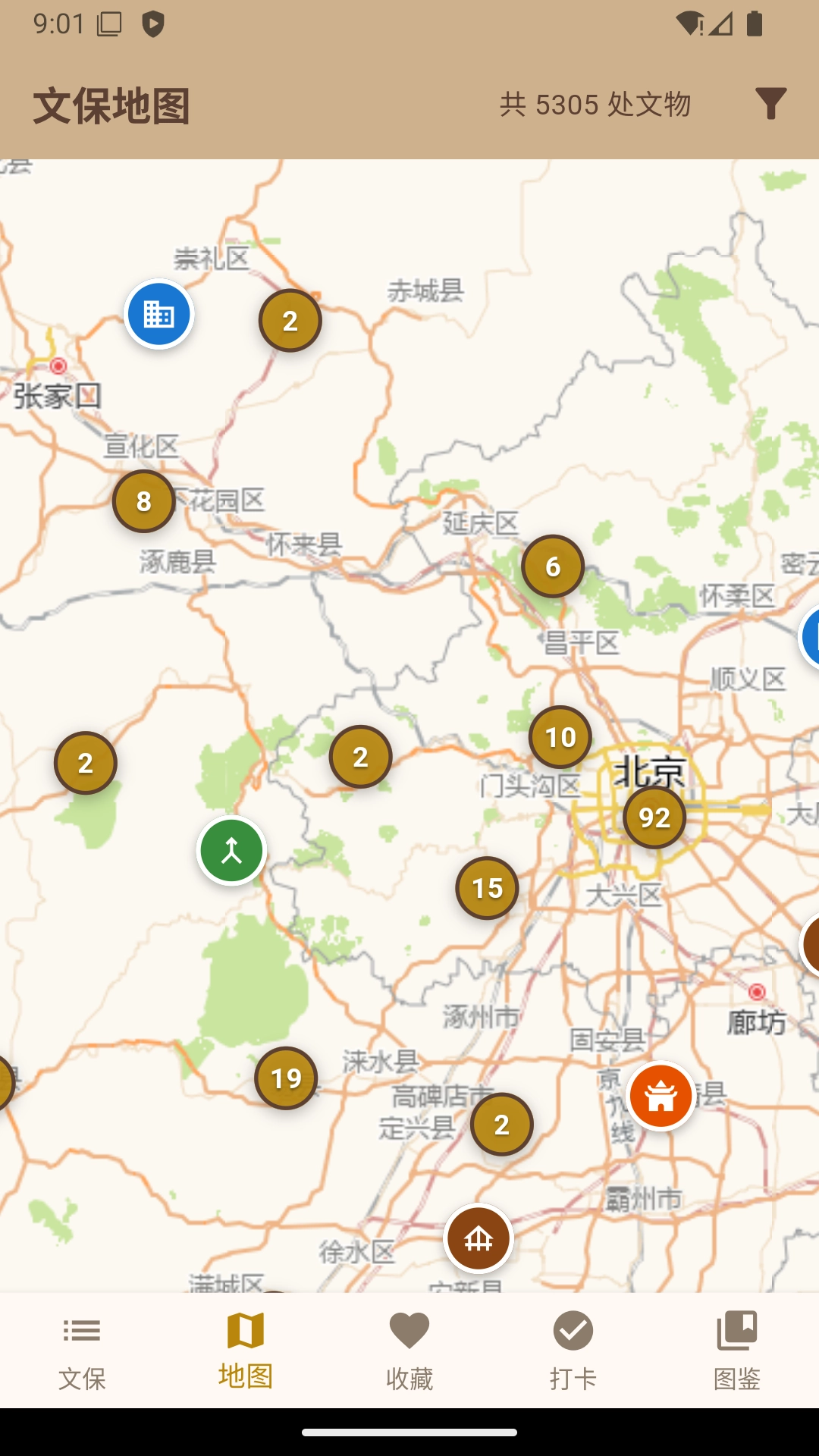 地图、收藏、打卡等功能相互联动,从查找文物到深度了解再到记录探索,便于用户掌握。