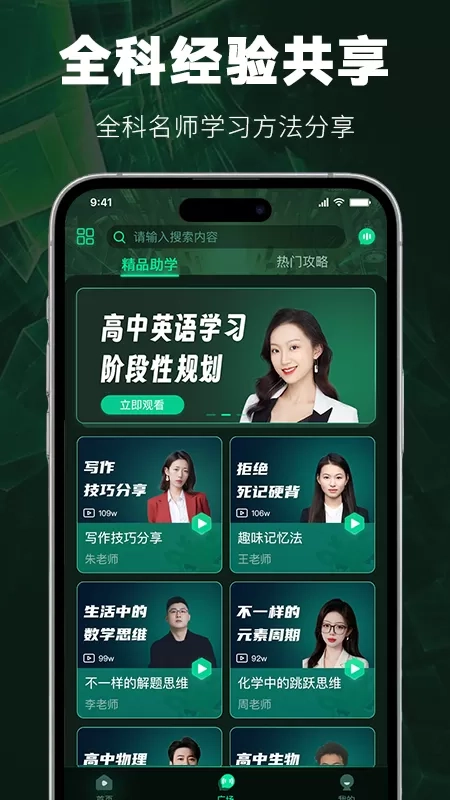 2.进入App首页,可以看到高中全科名师的学习方法分享
