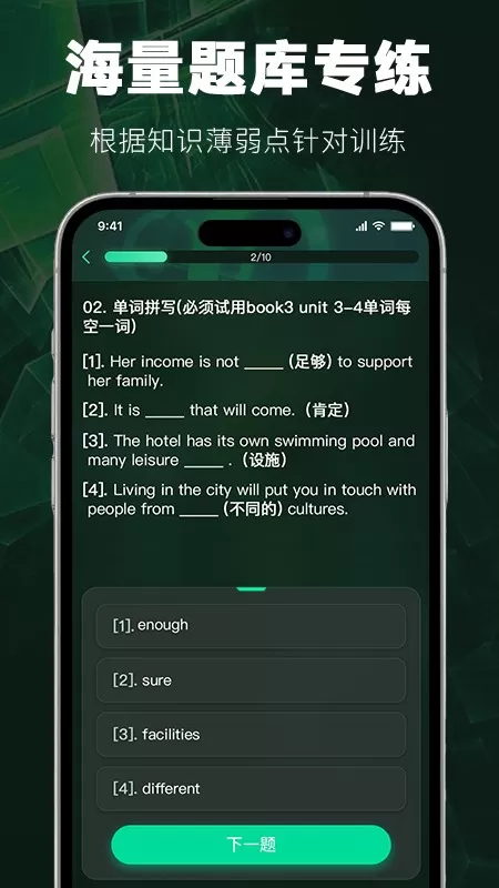 4. 点开题库标签页面,挑选与之对应的学科或者考试类型,每一道题目都配备有详细的解析,并且具备错题标记的功能。