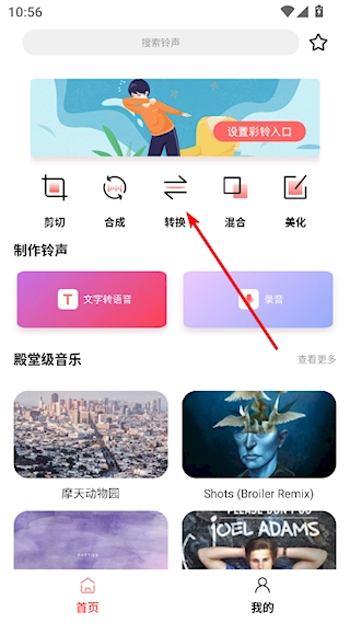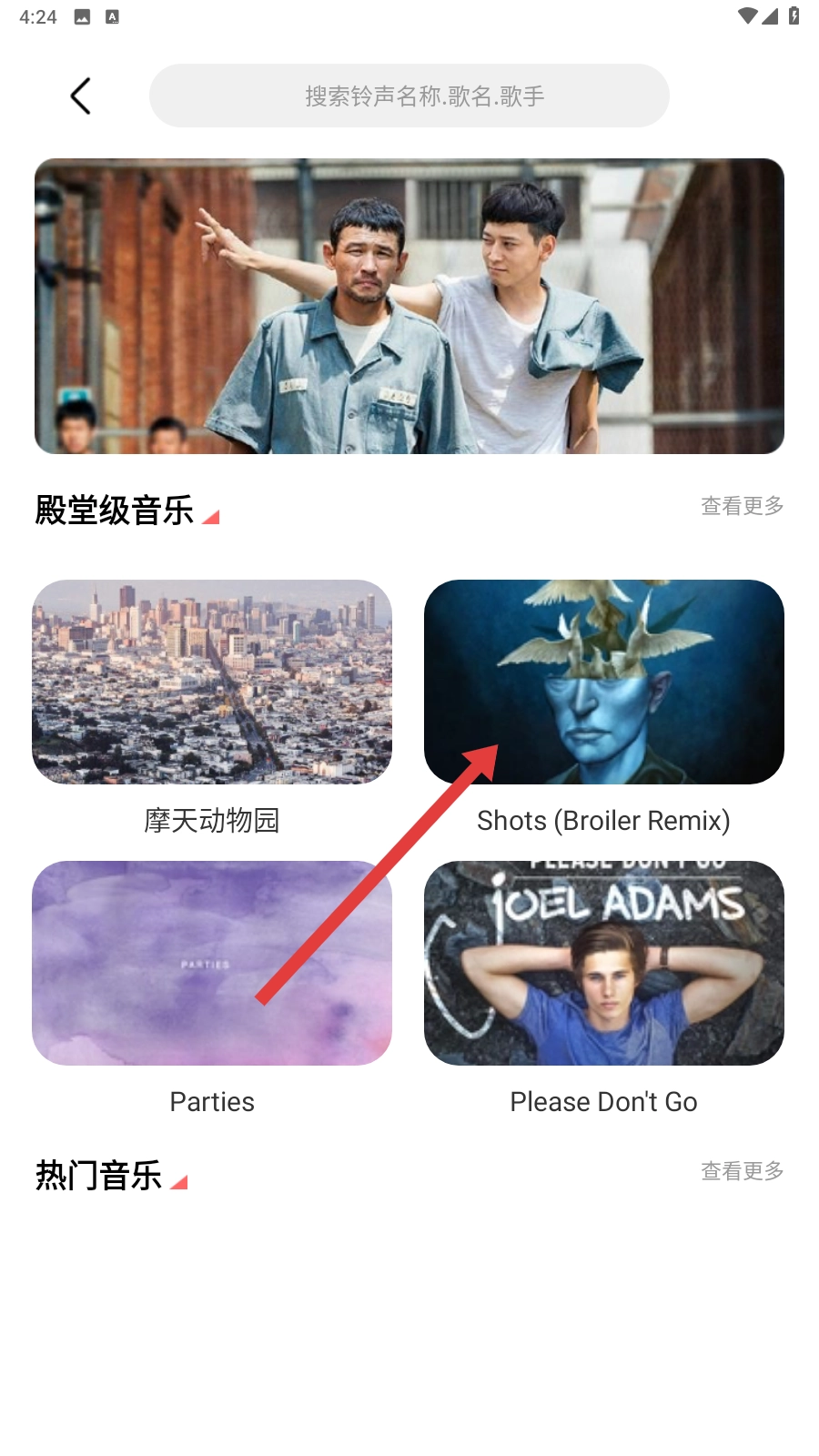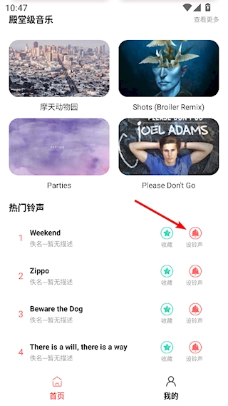 也可以在首页向下滑动,殿堂级音乐和热门铃声板块里都有不少优质铃声,点击铃声右边的【设铃声】按钮就能完成设置。