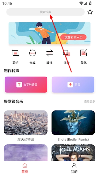 打开手机铃声制作应用后,在搜索框里查找想要使用的铃声。