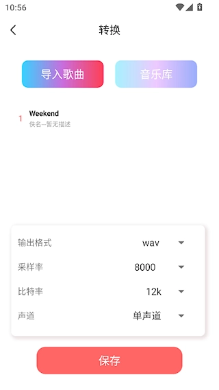 导入歌曲后,选择转换设置,点击【保存】即可。