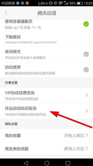 然后点击【作品自动购买取消】选项,接着进入设置页面,依照提示完成后续操作