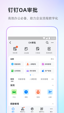 钉钉作为一款功能多样的职场沟通工具,配备了免费的OA办公系统,涵盖考勤、签到、审批、请假、报销等一站式OA服务。该应用支持自定义接入,助力企业实现智能移动办公,让工作方式更加便捷高效。