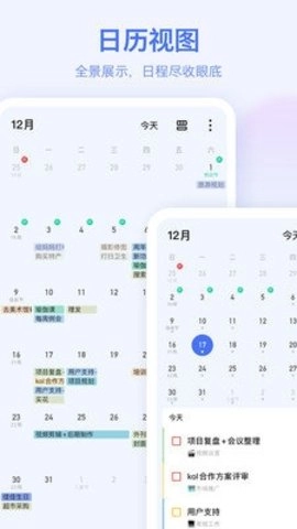 日历视图功能:可在日历里便捷查看每日的日程安排,并且支持在周视图和月视图中对任务进行自由拖拽操作。