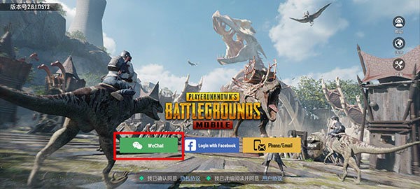 1、随后打开并进入绝地求生国际服,在登录界面中,我们要先点击同意下方的两个协议。