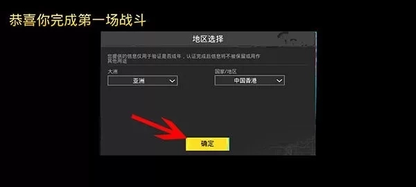 5、进入游戏后,根据自身情况选择地区,然后点击确定按钮