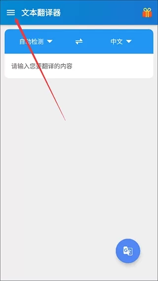 1、当打开文本翻译器之后,点击页面左上角处的图标。