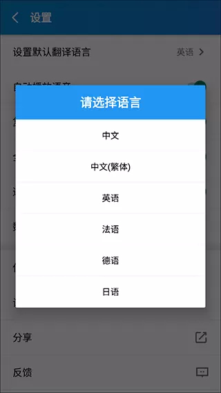 4、随后即可选择语言进行修改默认翻译语言。