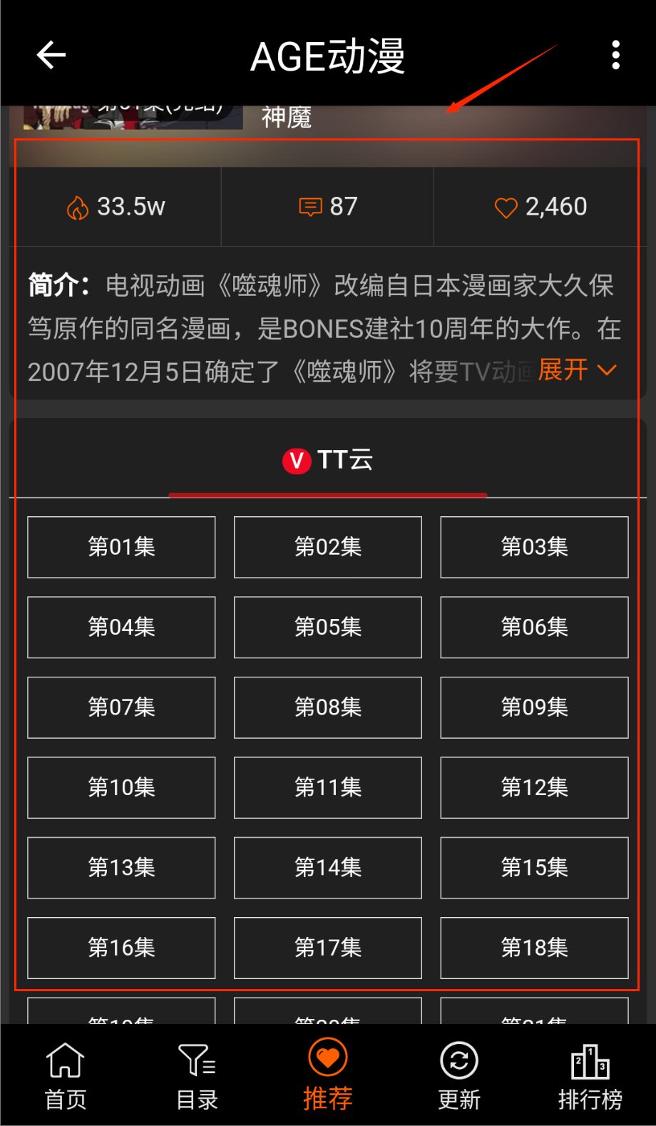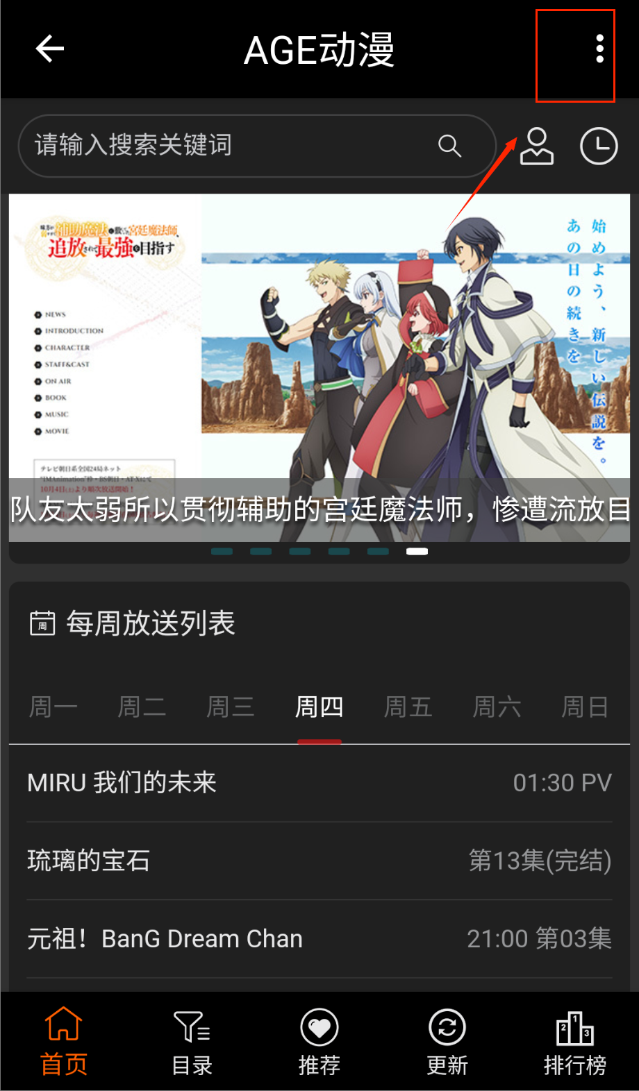 用户在首页选择要的动漫;