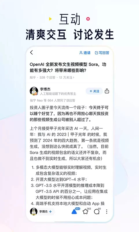用户能够进行提问、回答、点赞以及评论等操作,从而参与到丰富多彩的知识交流与讨论之中。