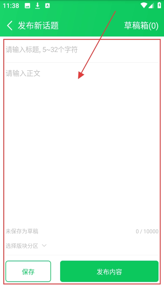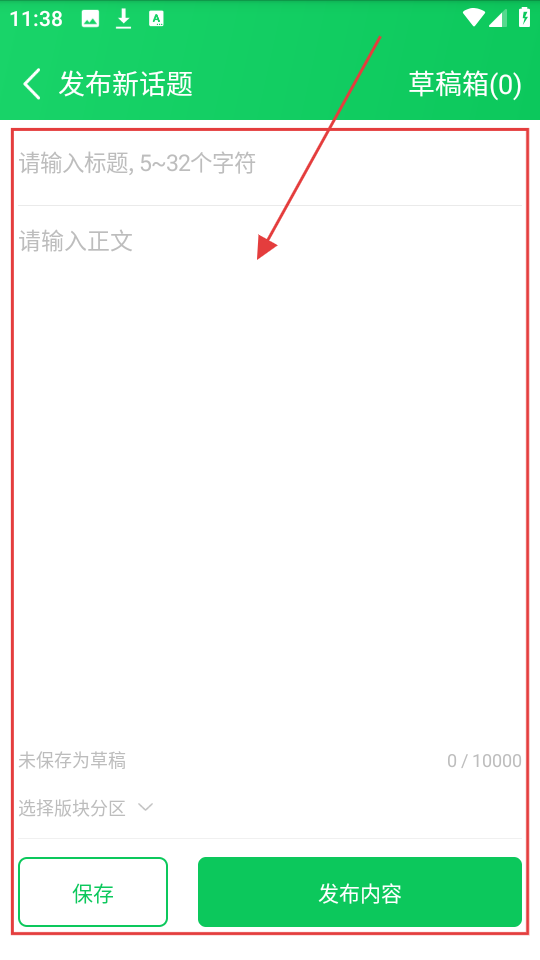进入新话题发布页面后,填写好【标题】与【正文】内容,再选择对应的板块分区,就可以完成发布了。