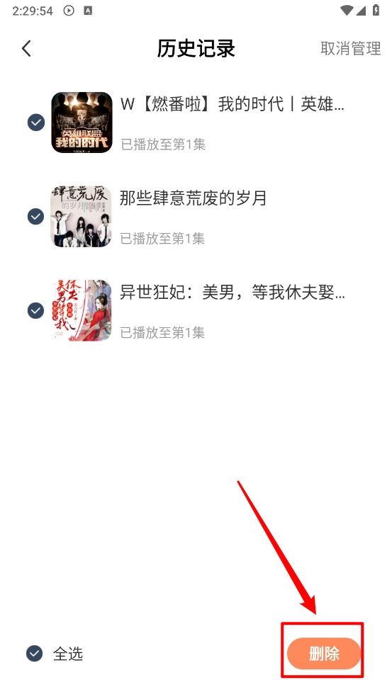 最后选择需要删除的记录,点击右下角"删除"即可。
