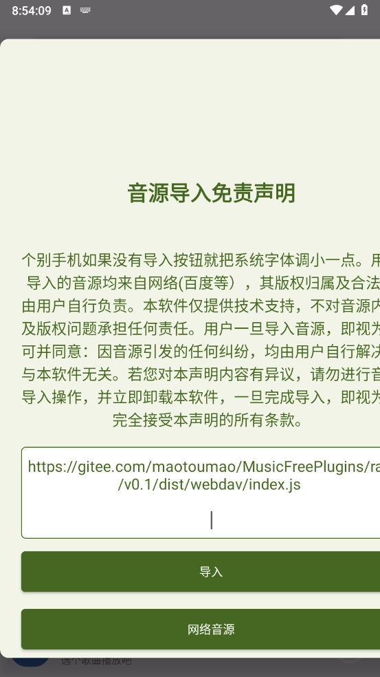 进入后粘贴以上音源地址,点击"导入"即可。
