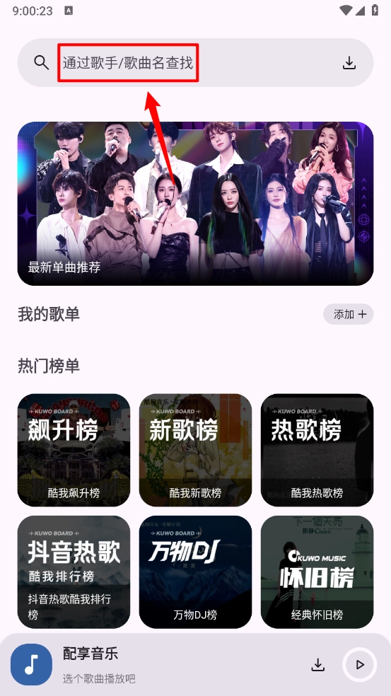 然后输入歌手/歌曲名查找。