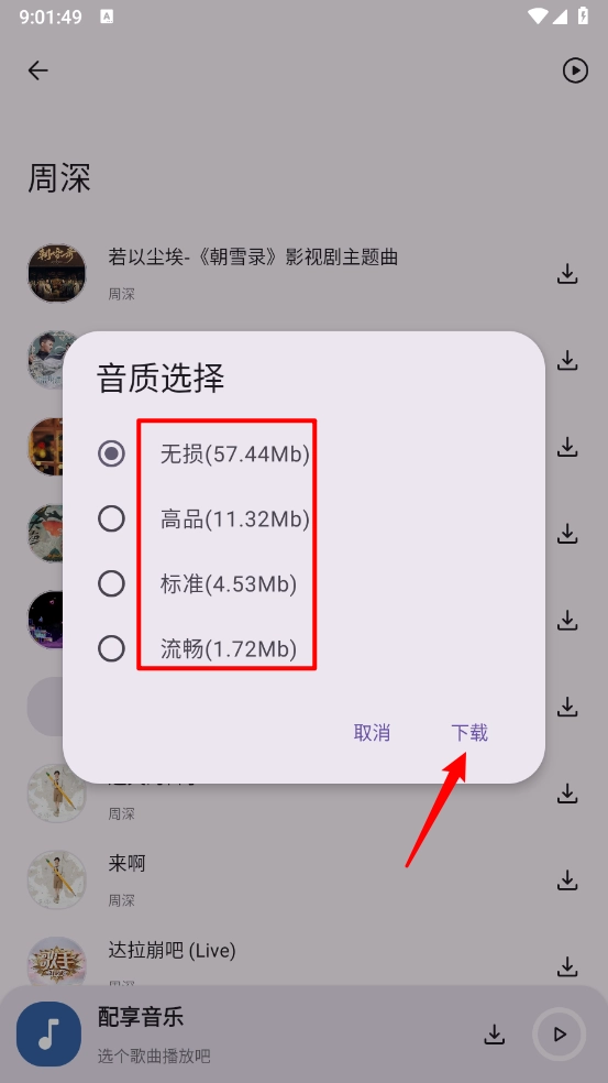 接着选择所需的音质,点击""即可。