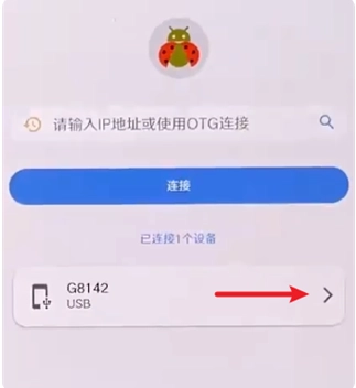 先准备好一个OTG转接头,接着打开甲壳虫adb助手软件,然后用数据线搭配OTG转接头把两部手机连接起来。