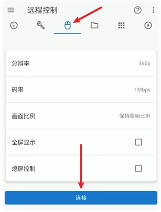 最后进入手机详情页,切换到远程控制选项,设置好参数后,点击底部的“连接”按钮就可以了。