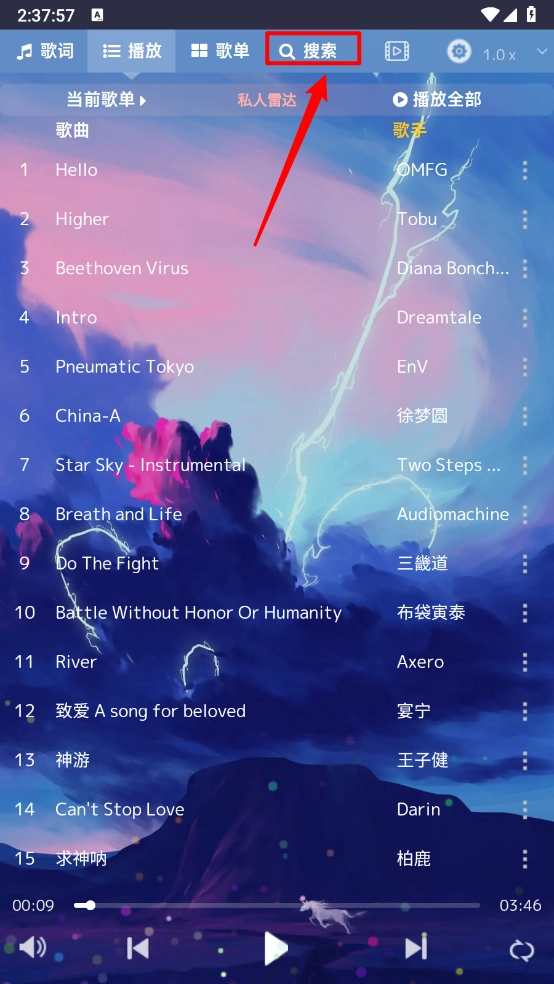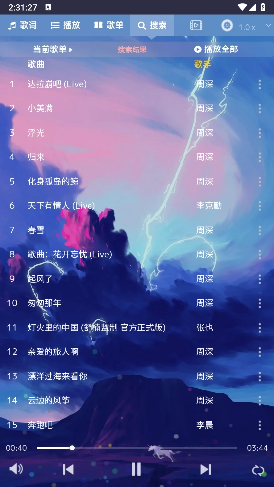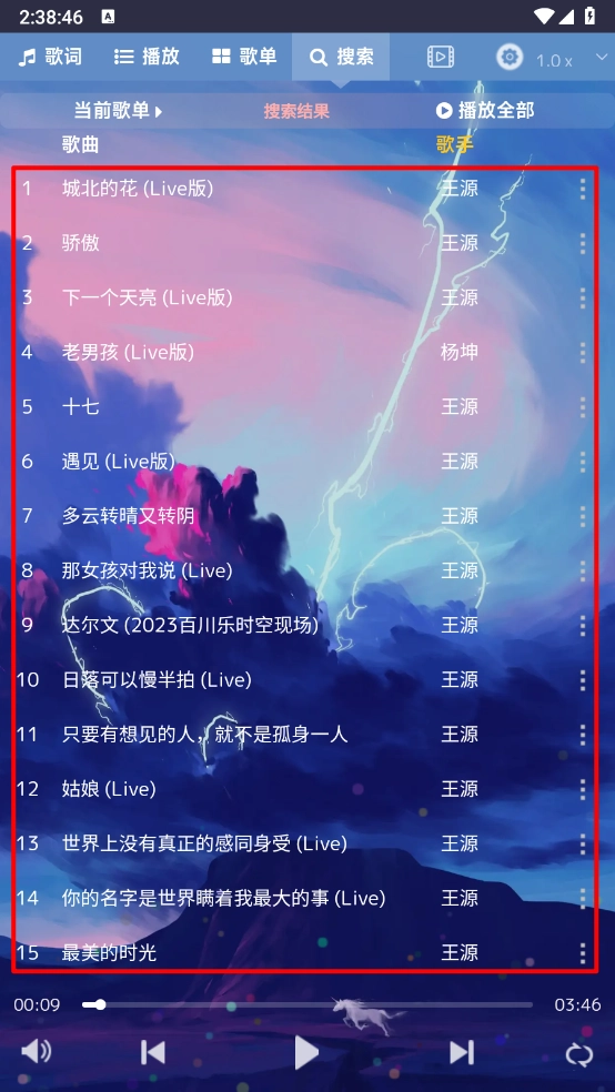 如图所示,这里包含了多个搜索结果点,只需一键操作,就能挑选出喜爱的音乐尽情聆听。