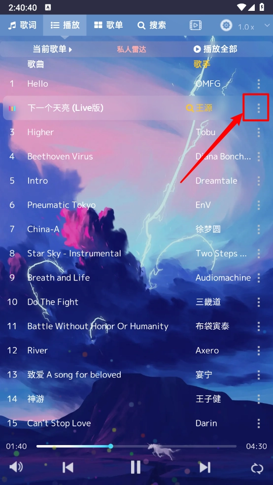 打开音乐序章,在喜欢的歌曲的右边点击三个点。